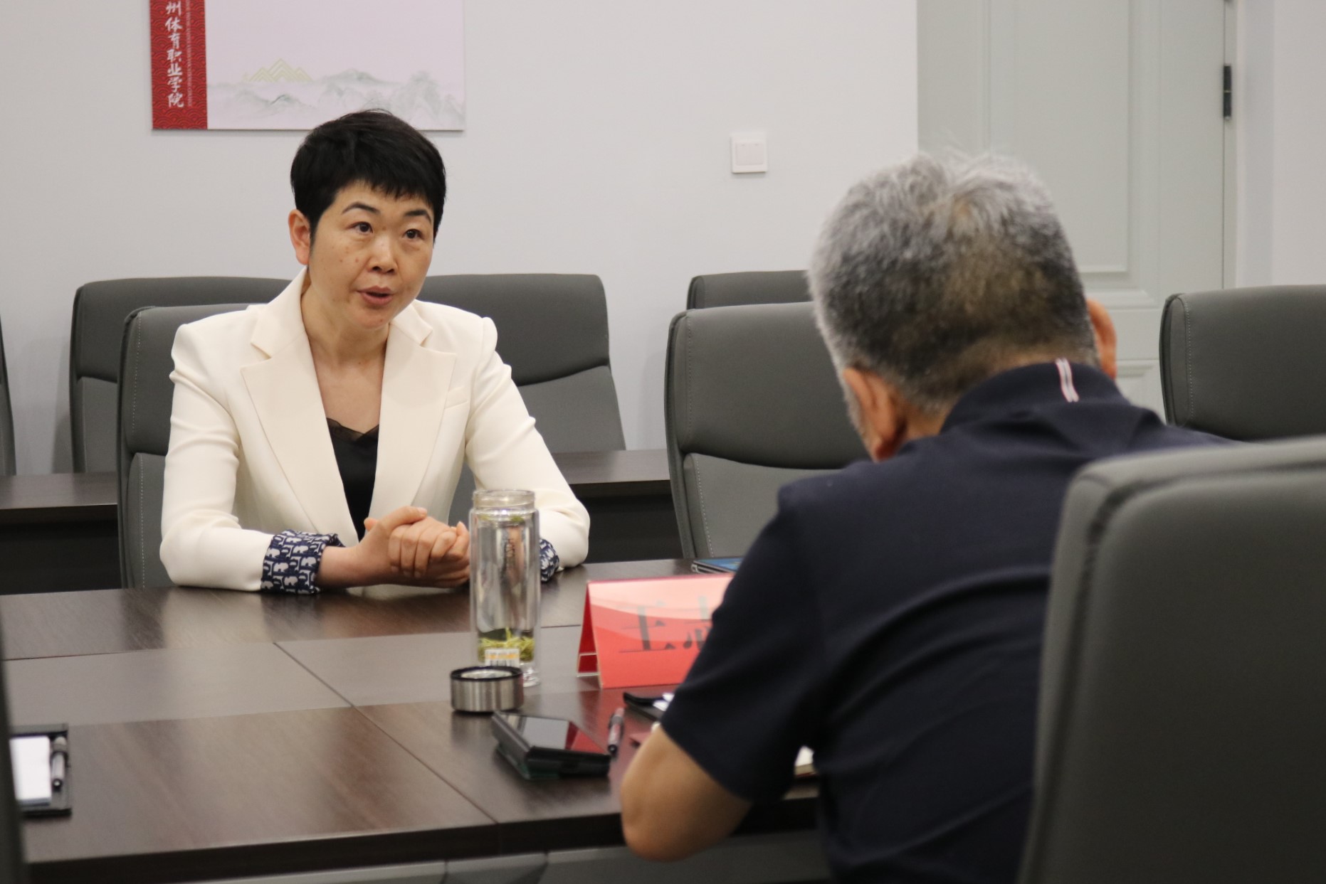 5月25日,省委教育工委主题教育第六巡回指导组组长、信阳航空职业学院党委副书记王志电,指导组成员袁渊、唐爱云、尤瑞琪一行莅临我校调研指导学习贯彻习近平新时代中国特色社会主义思想主题教育开展情况。理事长孟凡叶,校党委书记陈英利,校长关学增,校党建指导员、党委副书记陈广华,校党委副书记王晓慧,主管学生工作副院长王俊卿,校长助理孙丽,全体中层干部及部分教师党员参加了调研座谈。